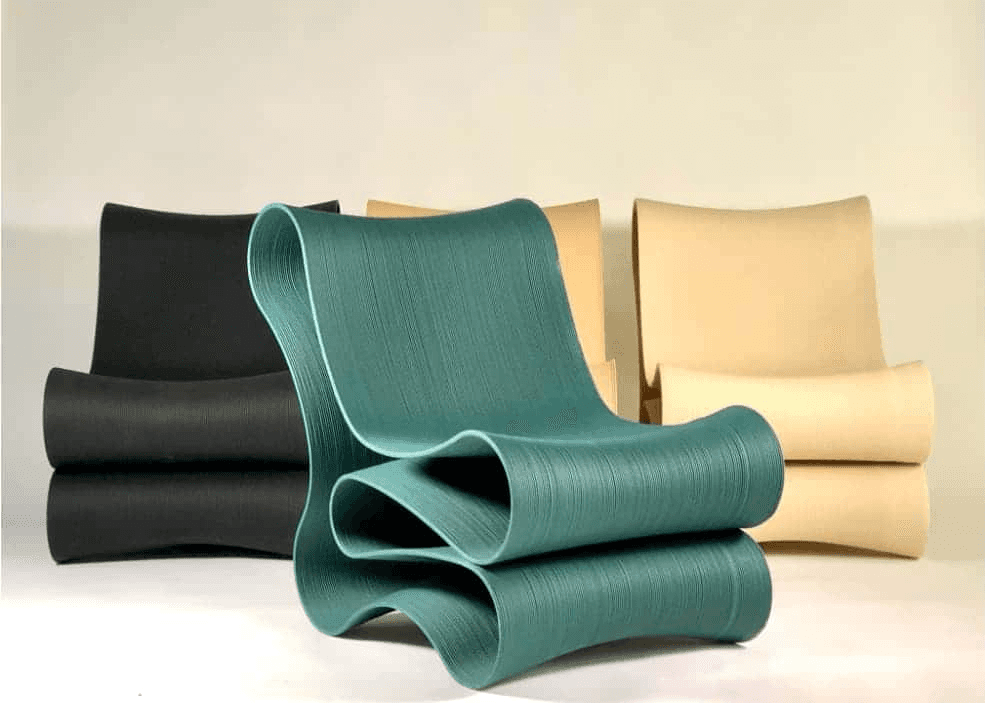I started by researching existing solutions for large format additive manufacturing (LFAM) furniture. A common solution balancing aesthetics and manufacturing was a multi-planar toolpath. I knew early on that I wanted to explore a more unique manufacturing approach and product category. An early hurdle for this project was that I wouldn't be able to physically prototype at scale and was working remotely from the Decibel team. These constraints propelled me to explore digital design processes which didn't sacrifice intent and successfully informed proportion, scale, and visuals.